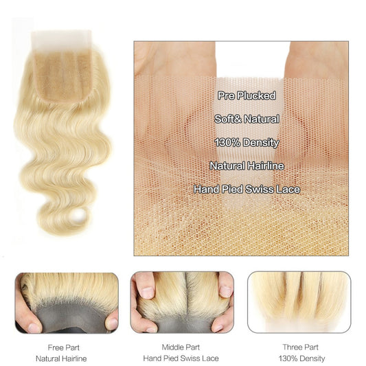 613 Human Hair Blonde Bundles with Closure|Hair Weave Extensions