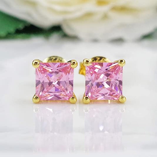 18k Gold Plated Lake Blue Created Topaz Stud Earrings