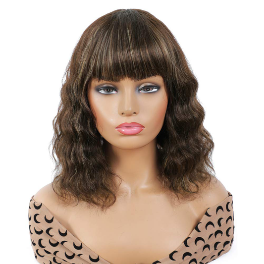 Short Bob Human Hair Body Wavy Wigs with Bangs 12 Inch
