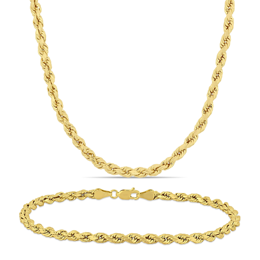 Necklace and Bracelet Set |10K Yellow Gold Rope Chain (4 MM)