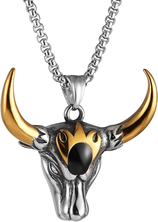Stainless Steel Pendant Bull Head Necklace -Reindeer Necklace