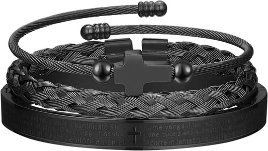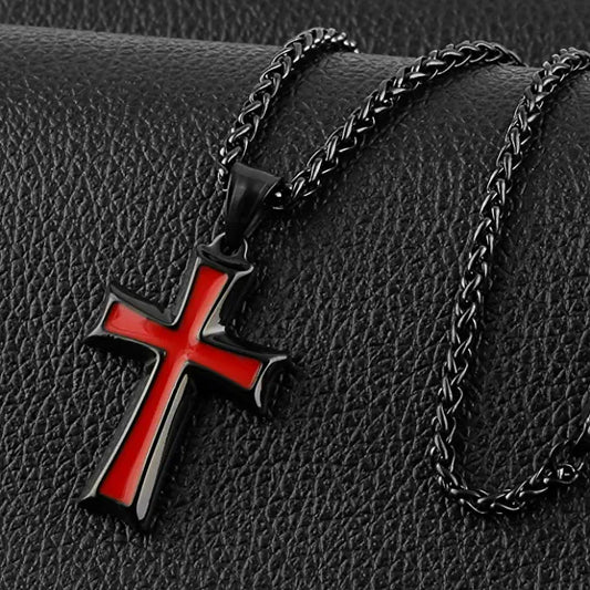 Black & Red Men's Stainless Steel Cross Pendant Necklace