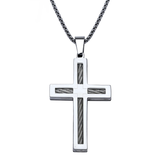 Men's Stainless Steel Cross Pendant Necklace-Silver