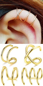 4Pcs Gold/925 Sterling Silver Cuff Earrings