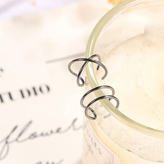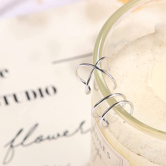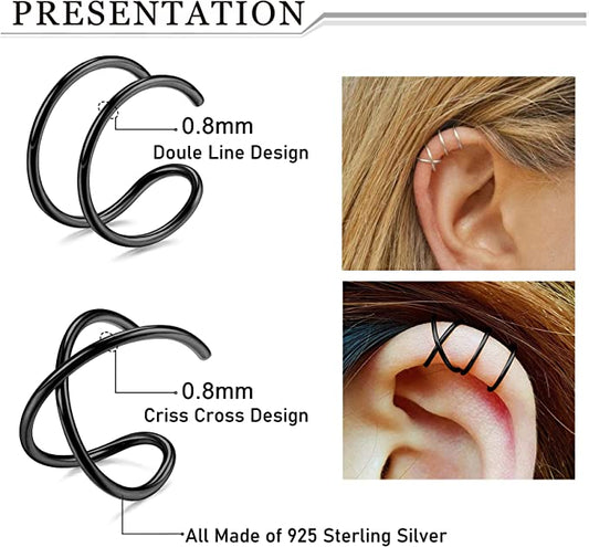4Pcs Cuff Cartilage Earrings Silver+Black
