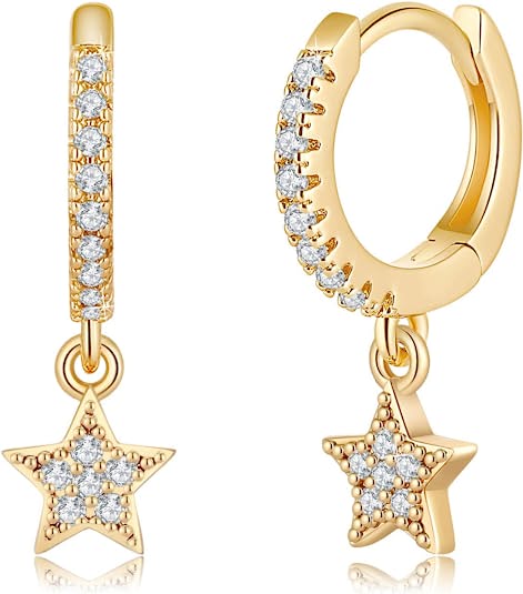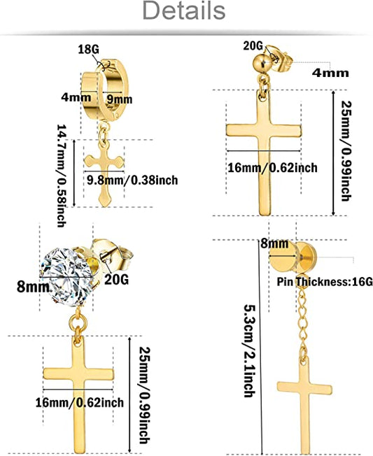 Cross Earrings Gold Huggie Hoop Dangle Drop