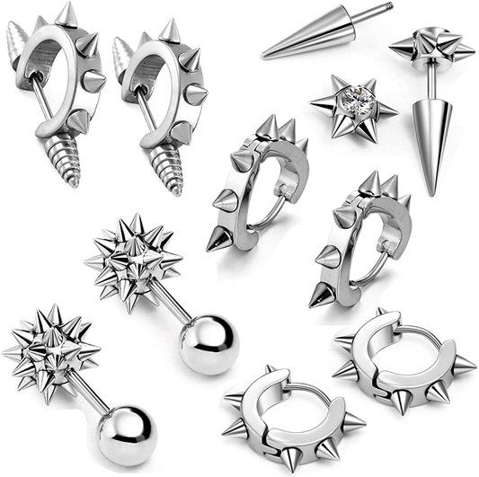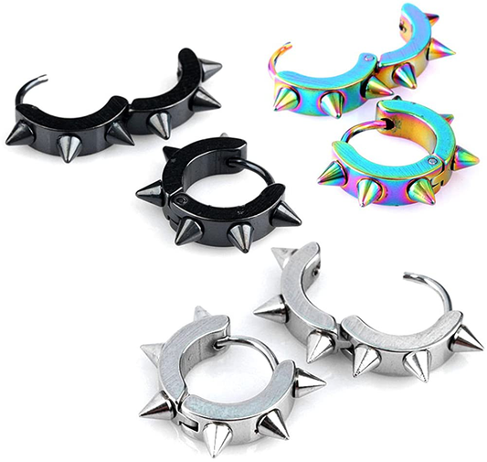 Punk Spike 3Set Stainless Steel Hoop Earrings