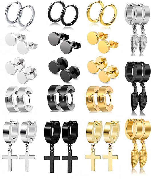 PUNK Stainless Steel Earrings Hoop 15-SET