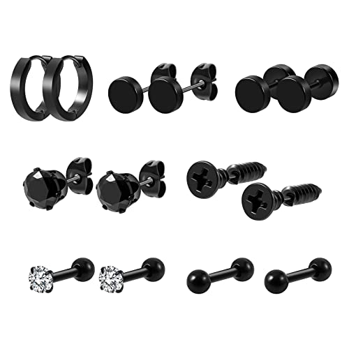 8 Pairs PUNK Black Stainless Steel Stud Earrings