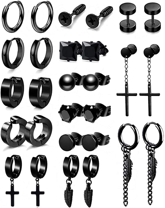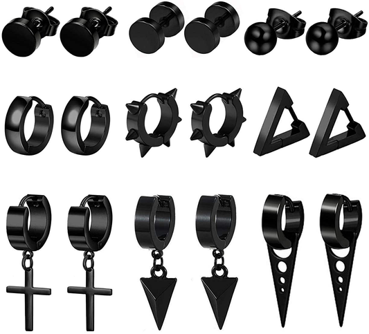 14 pairs Punk Black Hoop Dangle Stud Earrings