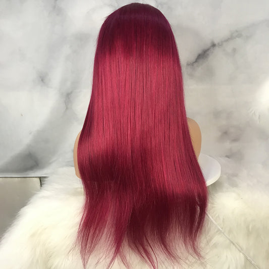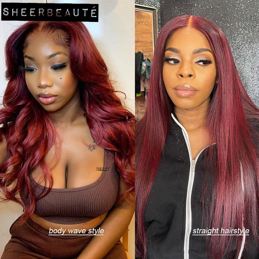 99J Burgundy Straight HD Transparent Human Hair Lace Front Wig For Women