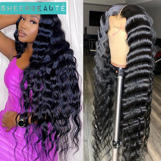 Loose Deep Wave 13x4 Transparent Human Hair Lace Frontal Wigs