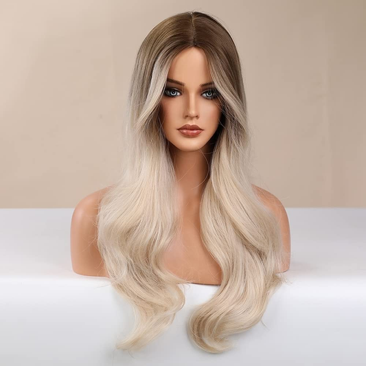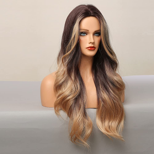 Ombre Dark Brown Blonde Long Natural Wave Wigs