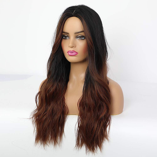 Long Ombre Brown Wavy Middle Part Full Non Lace Wig