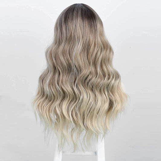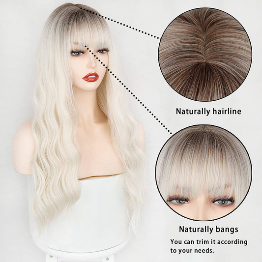 Long Wavy Dark Ashy Blonde Ombre Full Non Lace Bang Wig