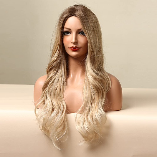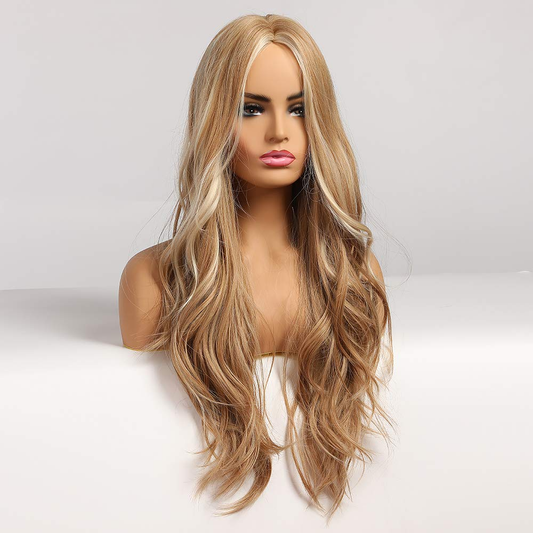 26Inch Long Blonde Natural Wavy Middle Part Wig