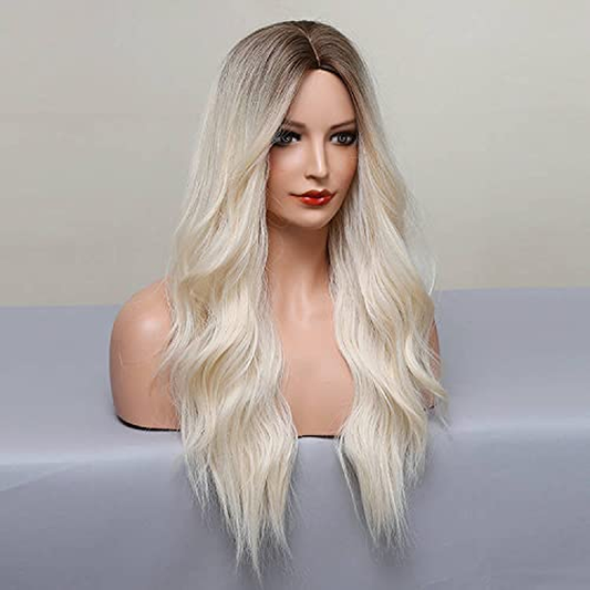 Platinum Blonde Dark Roots Long Wavy Wig For Women DragQueen