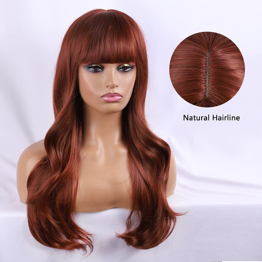Long Wavy Dark Auburn Wigs for Women DragQueen Bang Wig