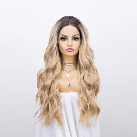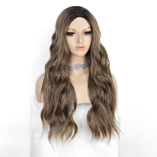 Ash Blonde Long Wavy Middle Part Full Non Lace Wig