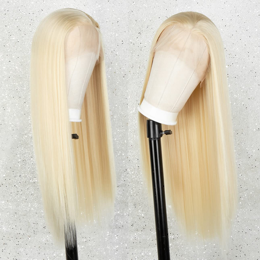 Long Natural Straight Platinum Blonde Lace Front Wigs