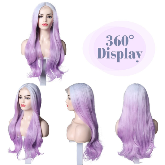 Long Wavy Ombre Purple HD Lace Front Wigs
