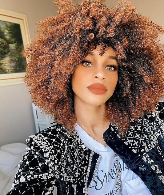 Ombre Brown 14 Inch Short Bob Kinky Curly Full Wig