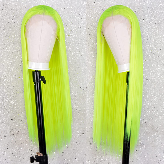 Long Straight Neon Green Lace Front Wig for Women DragQueen
