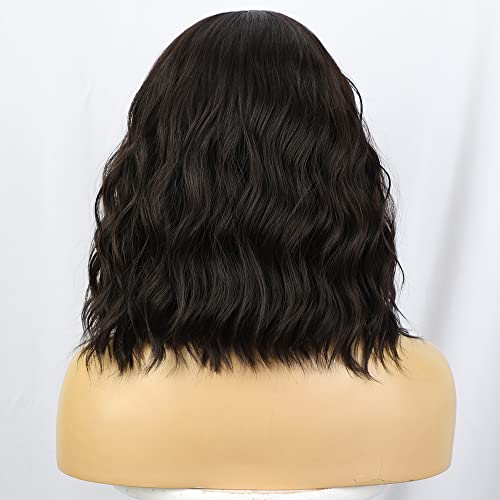 Short Bob Human Hair Body Wavy Wigs with Bangs 12 Inch