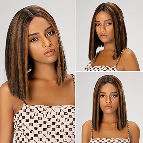 Short Wavy Brown Mixed Blonde Bob Lace Front Wigs