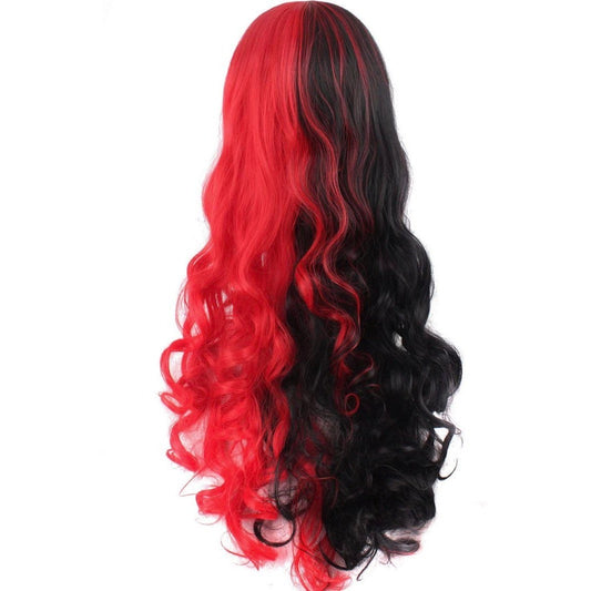 Rainbow Long Curly Ponytails Full Wig Black/Red Wigs