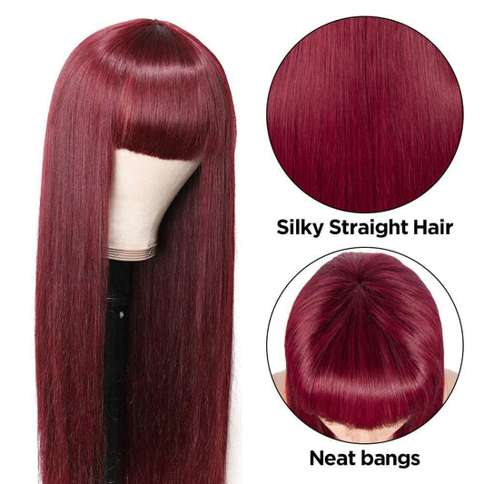 Burgundy Red Human Hair Wigs with Bangs