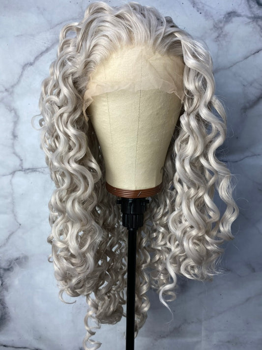White Curly Lace Front Wig