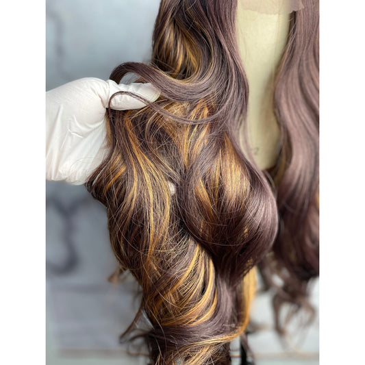 Dark Chocolate Brown Hair with Blonde Highlights Wig
