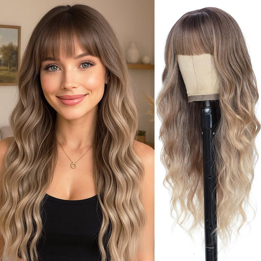 Long Curly Afro Wig with Bangs-Synthetic Hair