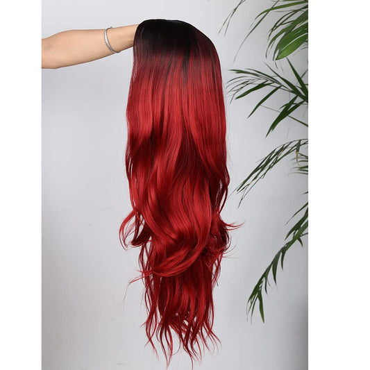 Ombre Red-Black Roots Long Cosplay Hair Wig