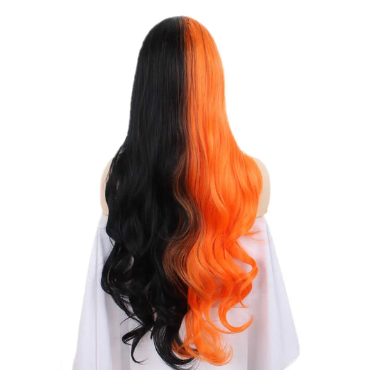 Half Black Half Orange Long Straight Synthetic Wig
