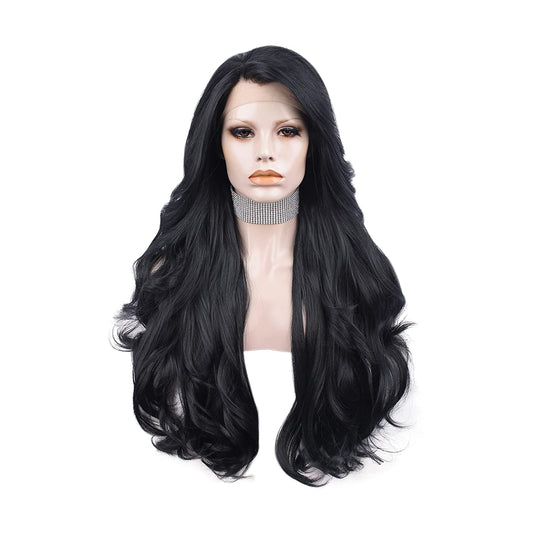 Jet Black Long Body Wavy Lace Front Wig