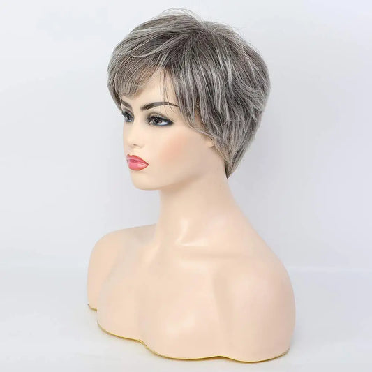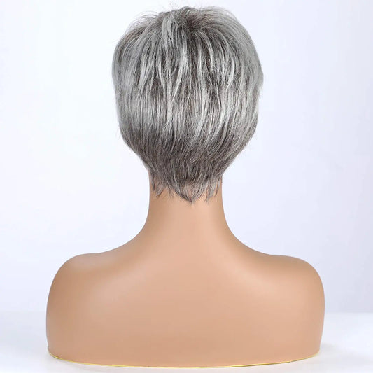 Short Silver Human Hair ,Synthetic Blend Pixie Cut Wigs