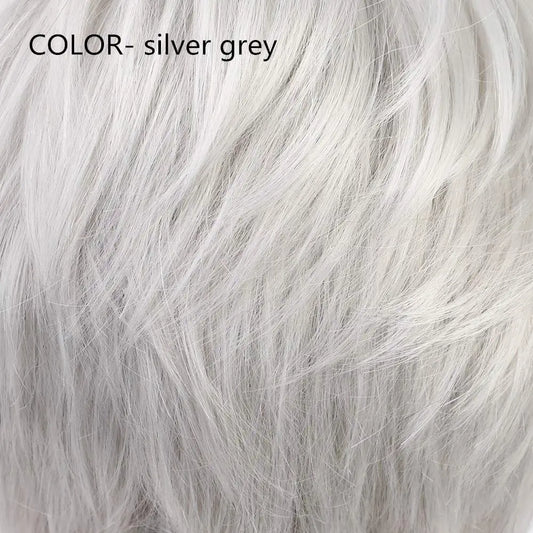 Short Silver Grey Human Hair Synthetic Blend Wigs