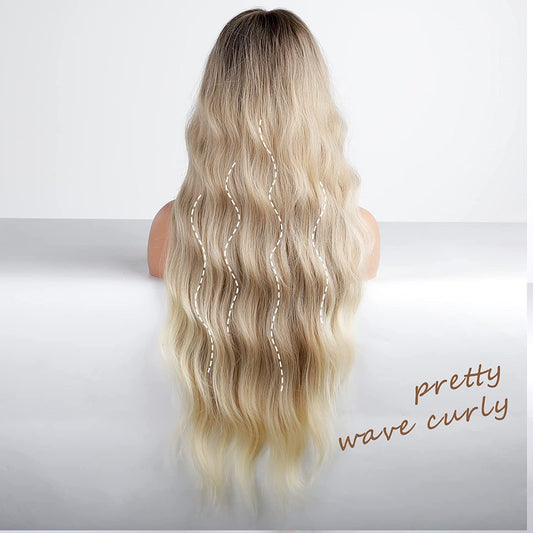 Ombre Platinum Blonde Curly Wigs With Curtain Bangs