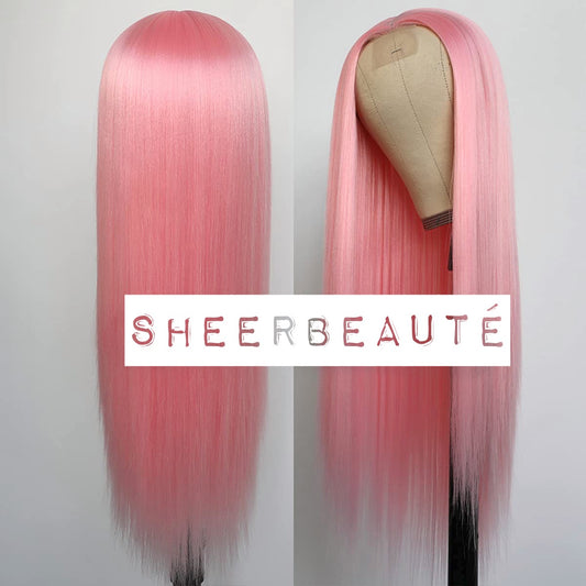Long Straight T Part Lace Front Wig-Pink Wigs