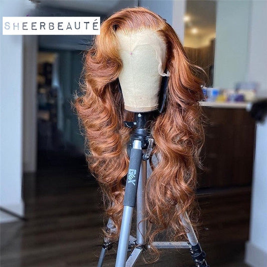 Ginger Body Wave Brazilian Human Hair Transparent Lace WIg