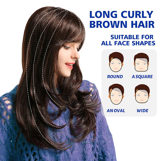 Dark Brown Long Wavy Human Hair Wig with Bangs