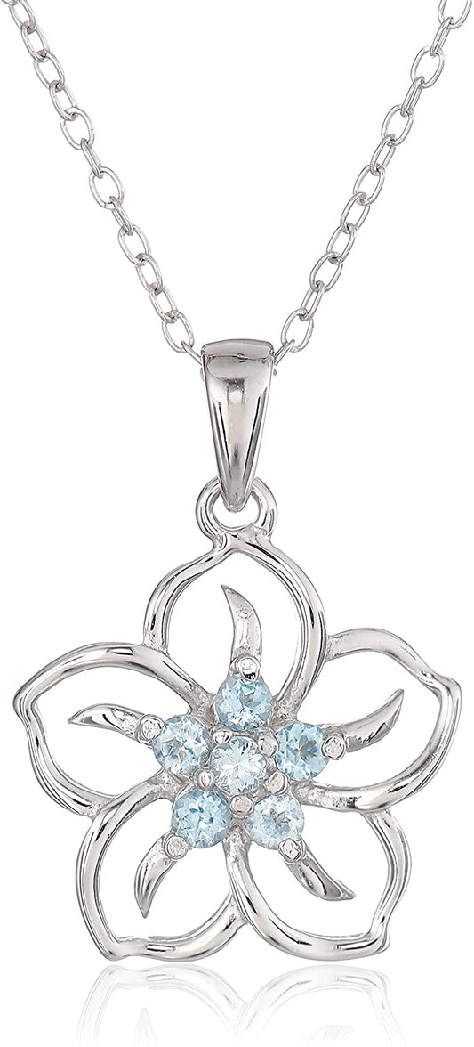 Sterling Silver Topaz Flower Pendant Necklace, 18" December birthstone