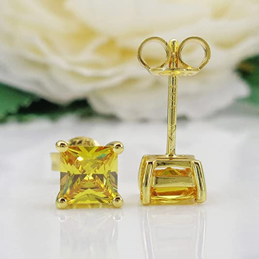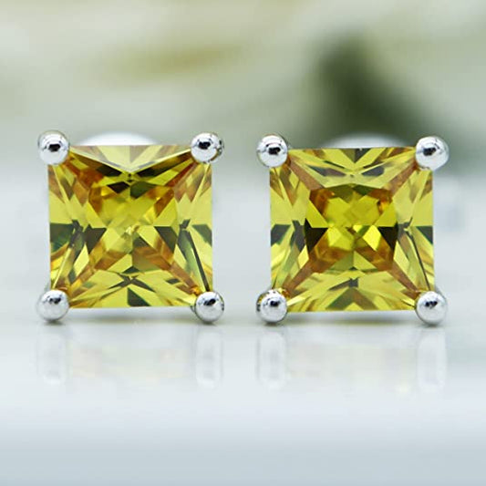 Yellow created Citrine 925 Sterling Silver Stud Earrings
