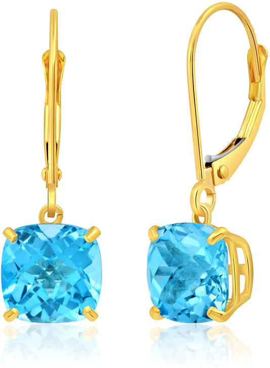 14k White or Yellow Gold Cushion Cut Dangle Earrings for Women