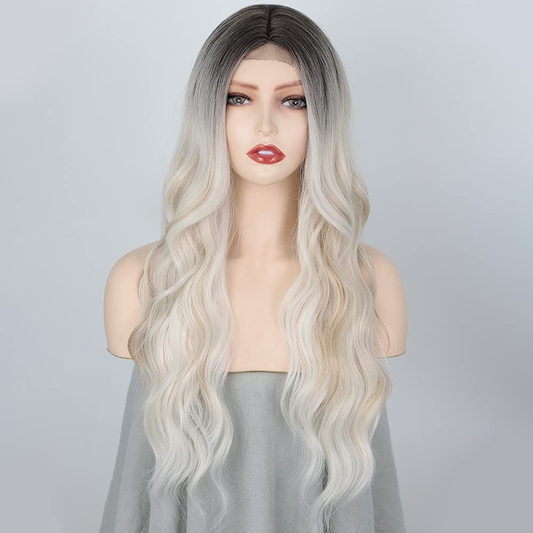 Ombre Platinum Blonde Middle Part Wavy Curly Wig