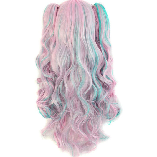 PINK/BLUE Long Curly 2-Ponytails Full Wig