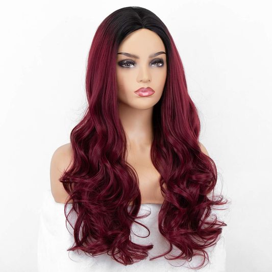 Long Burgundy Ombre Wavy Full Wigs