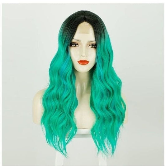Green Middle Part Long Wavy Wig